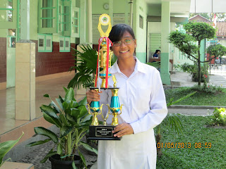 Katrin mendapat JUARA 1 dengan nilai 252 point. Dengan mengambil judul “PERPUSTAKAAN JANTUNG PENDIDIKANKU”, berikut
