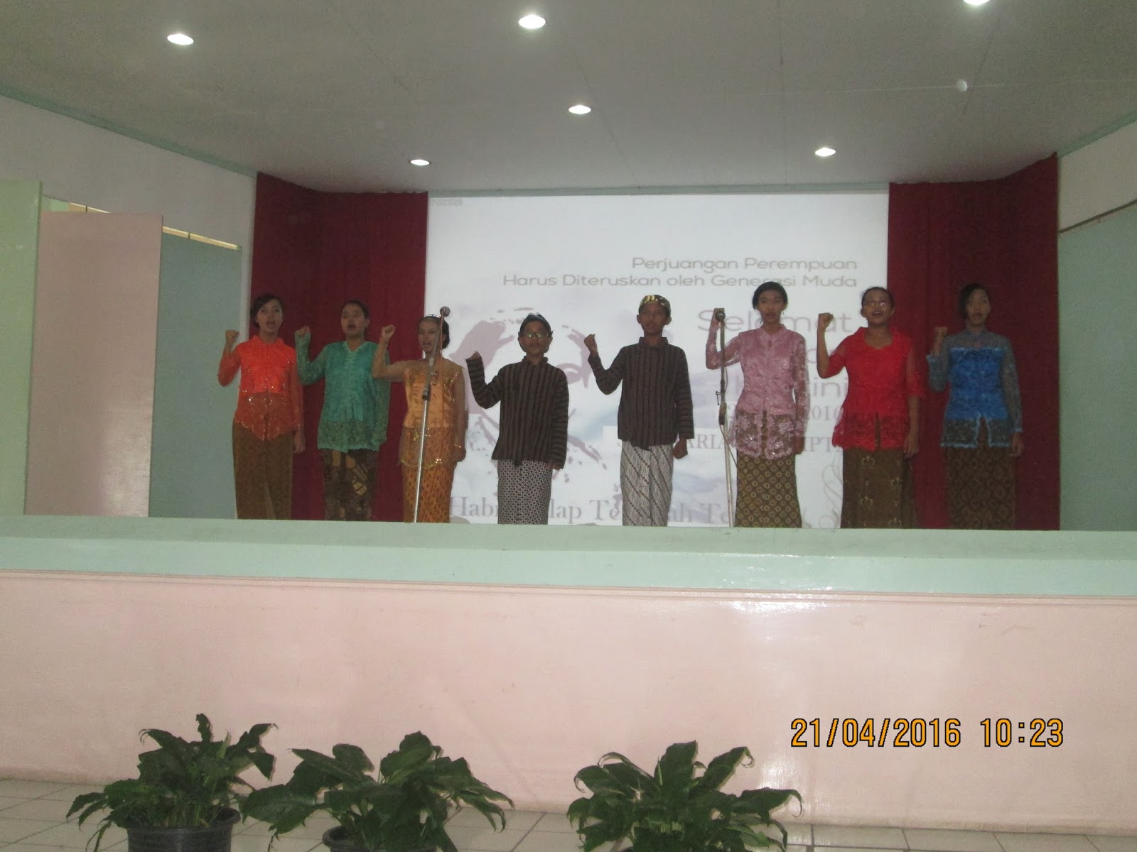 Sebagai wujud rasa nasionalisme, keluarga besar SMP Maria Assumpta pun turut memperingati Hari Kartini dengan mengadakan upacara dan berbagai perlombaan yaitu lomba paduan suara menyanyikan lagu Ibu Kita Kartini dan lagu daerah, lomba memasak, lomba merias dan fashion show busana daerah, serta lomba menyeterika.