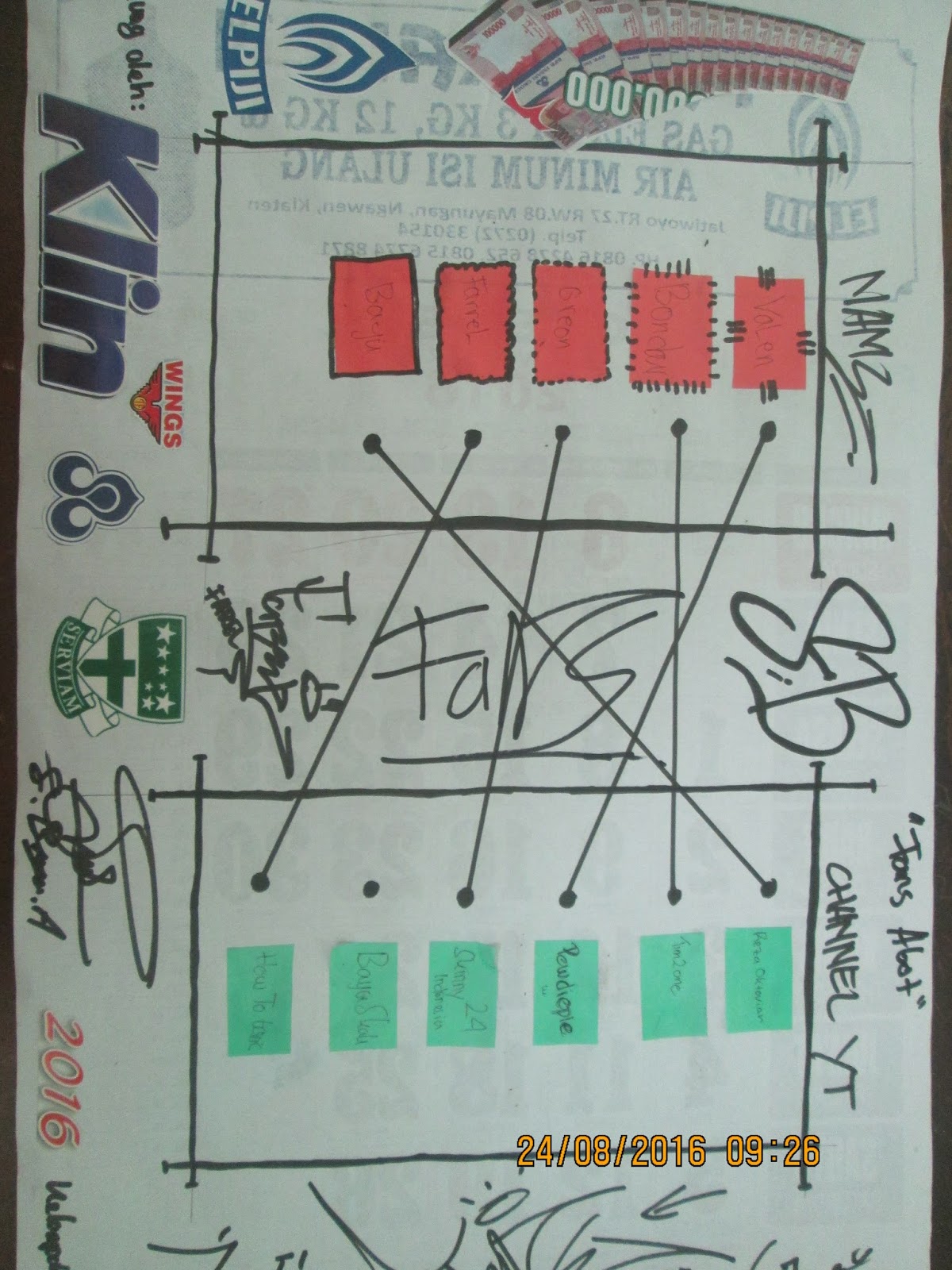 Kali ini siswa dibagi ke dalam beberapa kelompok dan diminta untuk mendiskusikan tentan kegemaran dan warna kesukaan masing-masing anggota kelompok. Kemudian, siswa diminta menyajikan hasil diskusi mereka ke dalam diagram panah dengan memanfaatkan kertas kalender bekas dan kertas lipat berwarna-warni.