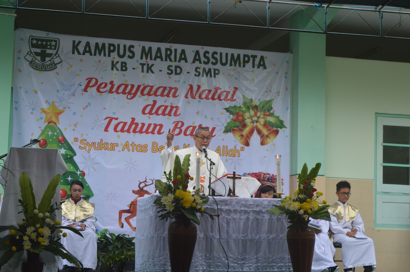 Sabtu (7/1), keluarga besar kampus Maria Assumpta menyelenggarakan perayaan natal di halaman kampus dengan mengundang para orang tua siswa TK, SD, dan SMP Maria Assumpta. Perayaan natal diawali dengan misa bersama. Misa perayaan natal sekaligus peresmian gedung baru kampus Maria Assumpta dan pemberkatan patung St. Angela dan patung Bunda Maria itu dipimpin oleh Rm. Mul dari Yogyakarta. Setelah misa selesai, acara dilanjutkan dengan penampilan-penampilan apik dari siwa TK, SD, dan SMP Maria Assumpta.