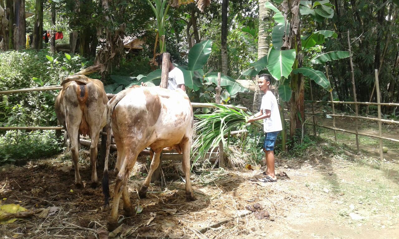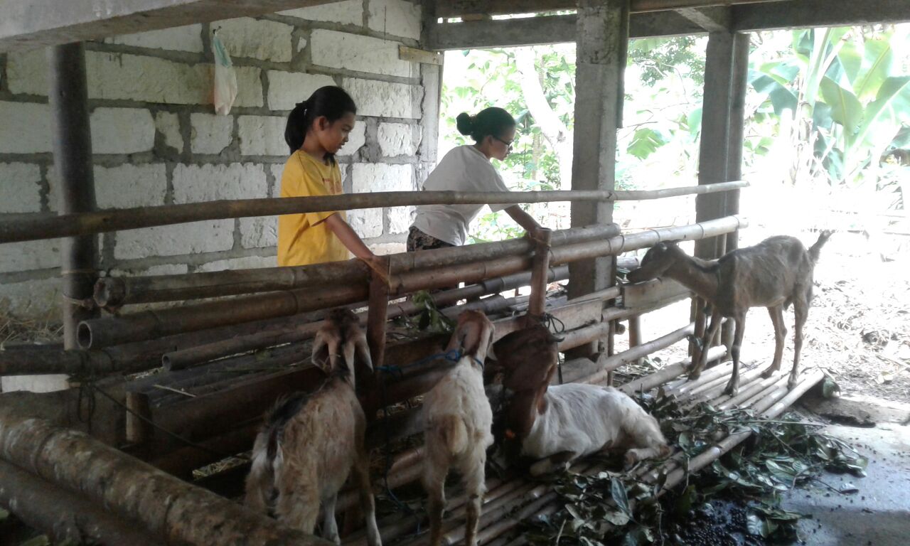 sana para siswa melakukan banyak hal, seperti; memberi makan kambing dan sapi, membantu