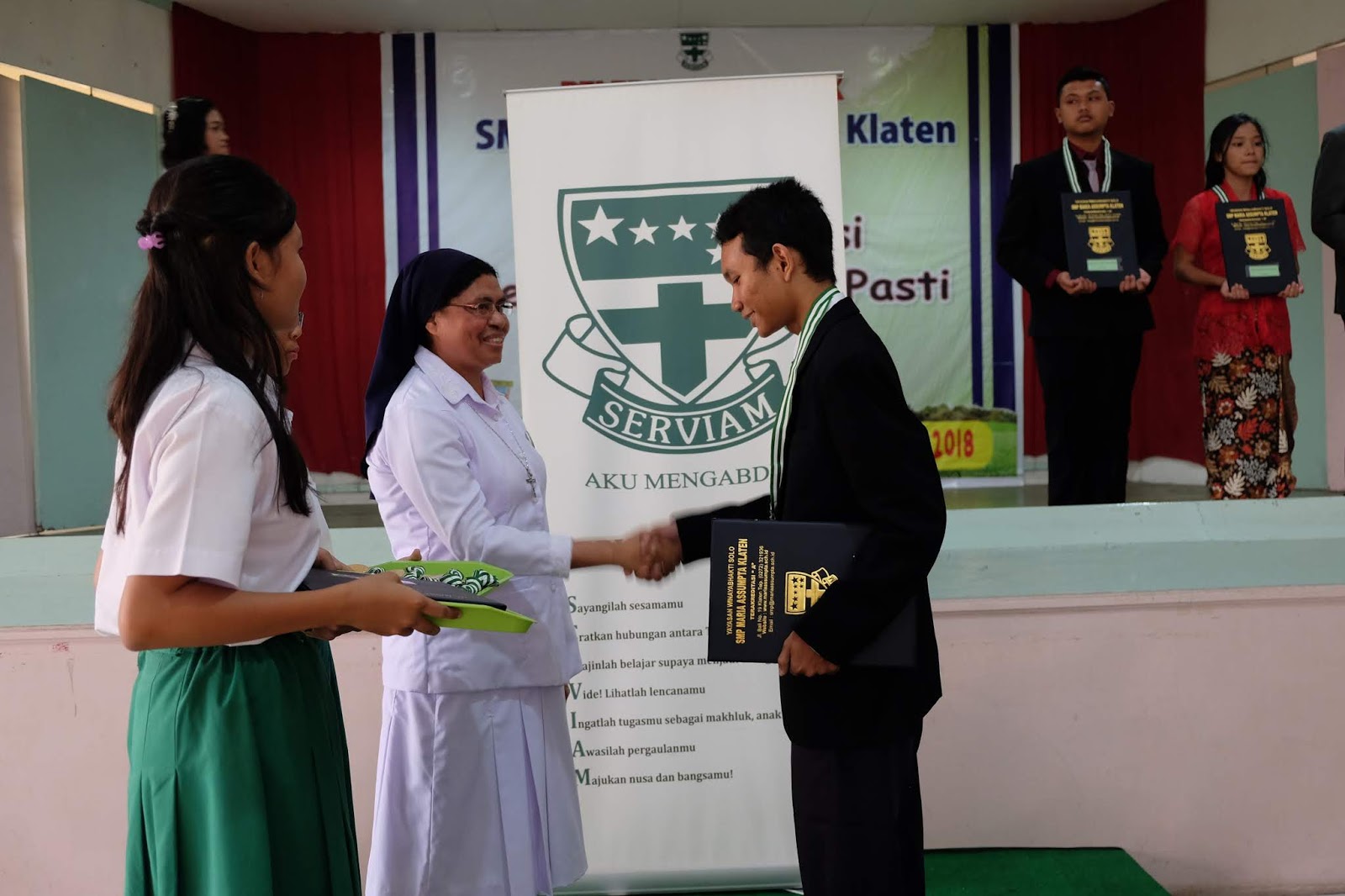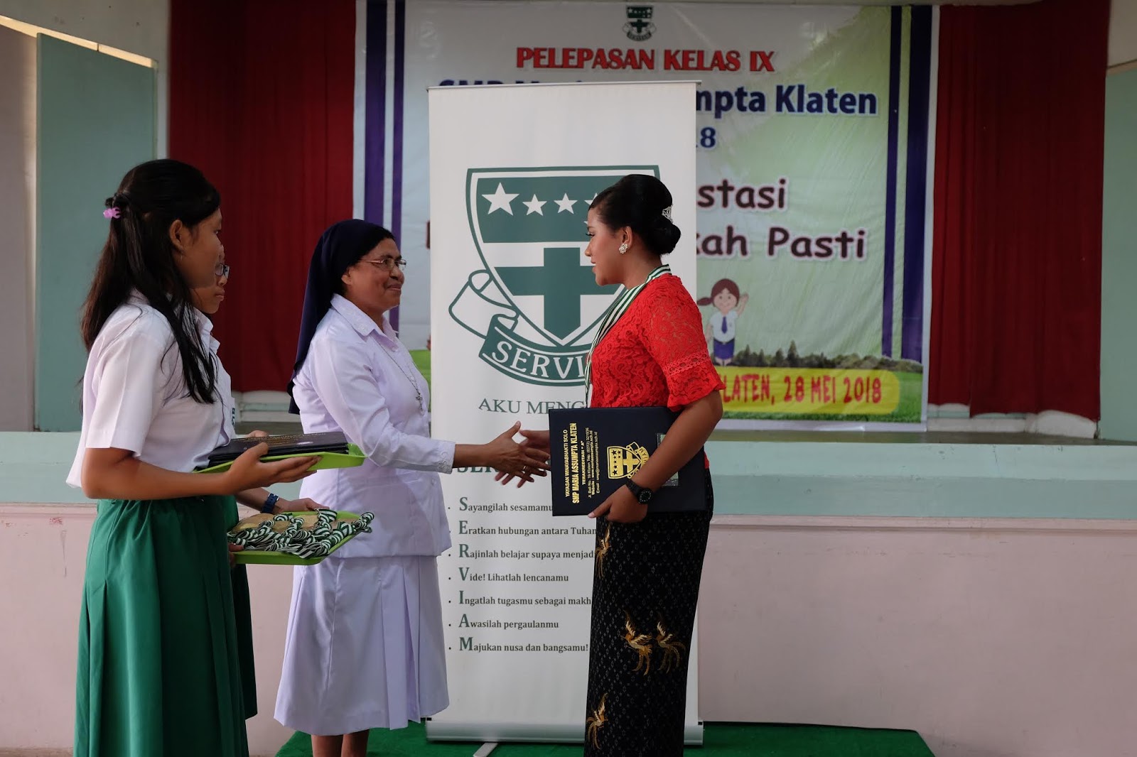 Inilah saatnya para siswa menerima kabar gembira yang telah lama dinanti-nantikan, dimana siswa kelas IX SMP Maria Assumpta dinyatakan lulus 100%. Tawa dan tangis haru memecah keheningan aula kampus. Rasa syukur dan bahagia pun dirasakan oleh para suster, Bapak Ibu Guru atas kelulusan yang telah dicapai para siswa.