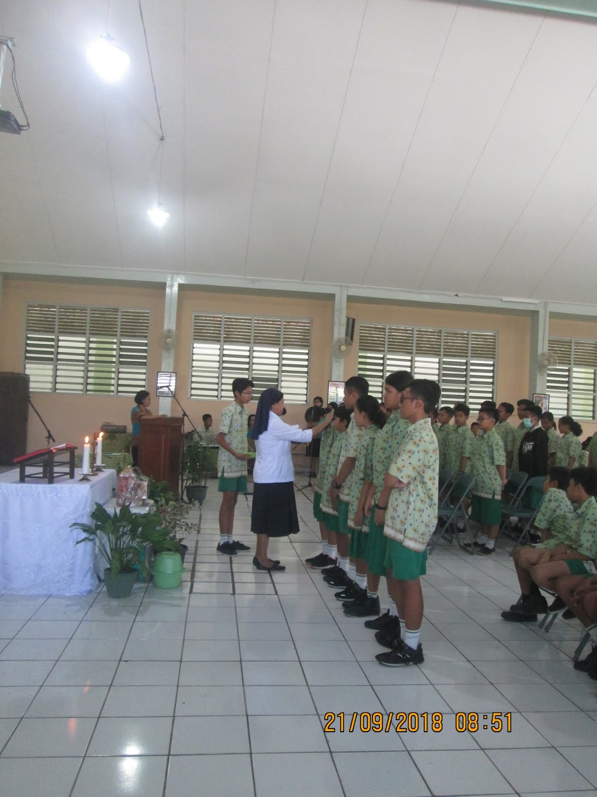 Pukul 09.00, misa pelantikan OSIS dan anggota Dewan Penggalang periode 2018/2019 selesai dilaksanakan.