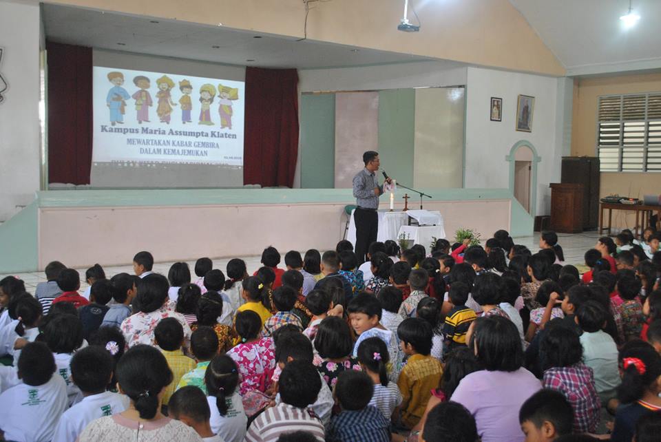 Selasa (2/10), seluruh warga kampus Maria Assumpta mulai jenjang KB, TK, SD, dan SMP, berkumpul di gua Maria untuk melaksanakan ibadat pembukaan bulan Rosario 2018. Siswa kampus Maria Assumpta didampingi oleh bapak ibu guru melaksanakan ibadat di area depan gua di bawah pohon beringin yang ikonik di kampus ini. Ibadat dimulai pukul 07.00 dengan dibuka pembacaan sejarah doa rosario oleh Sr. There OSU (kepala SD Maria Assumpta). Anak-anak serta bapak ibu guru dijelaskan pentingnya doa rosario dan diajak untuk gemar melakukan doa rosario, terlebih di bulan yang memang dikhususkan untuk memberi penghormatan kepada bunda Maria, ratu rosario ini.